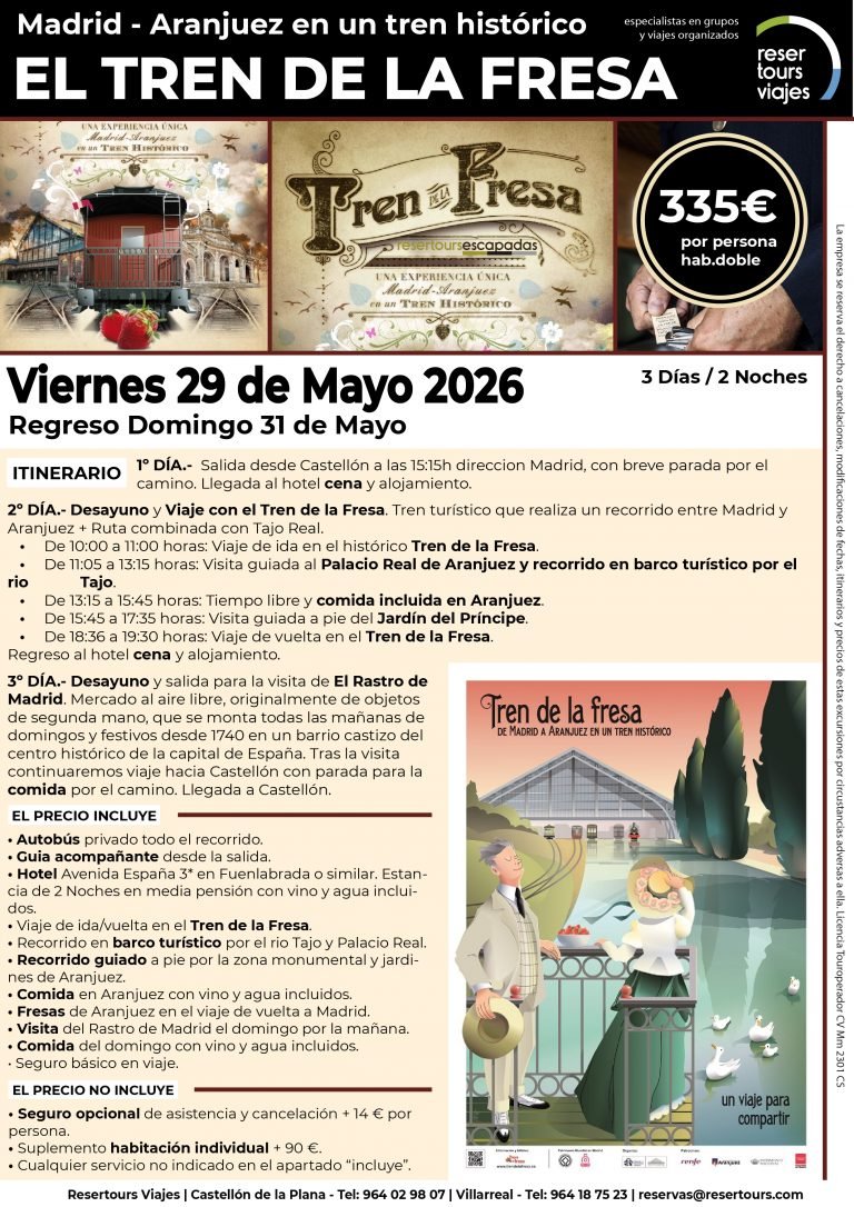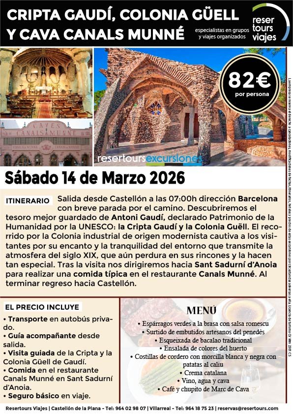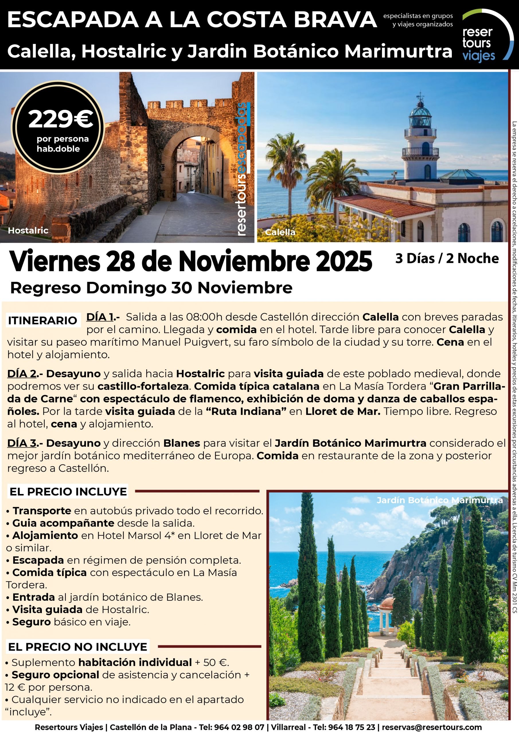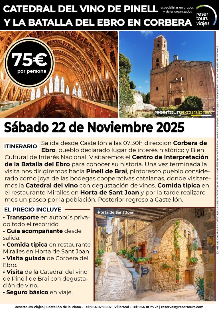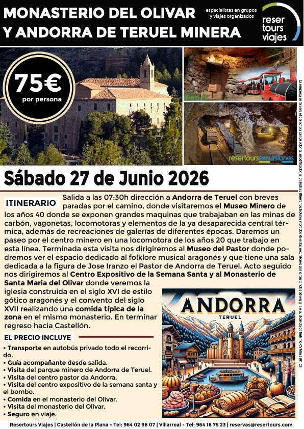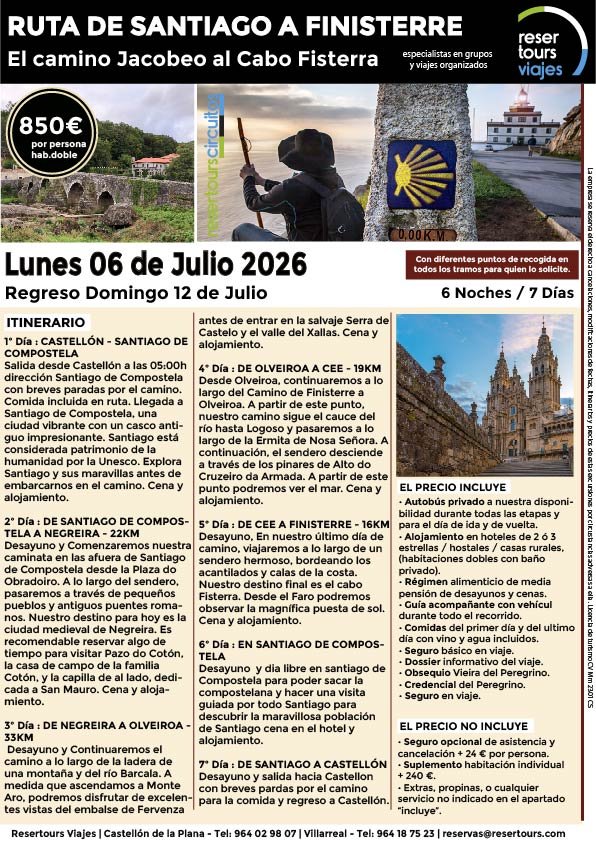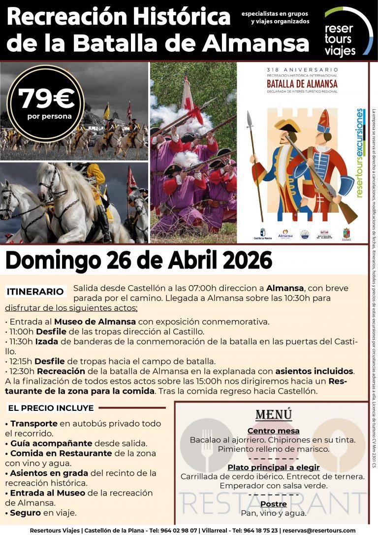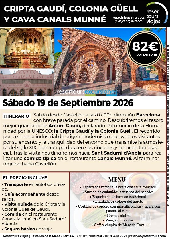 Política de privacidad y protección de datos : En cumplimiento de lo dispuesto en el Reglamento General de Protección de Datos Reglamento UE 2016/679, le informamos de que los datos de carácter personal incorporados al presente documento, se integrarán en un fichero de titularidad de RESERTOURS S.L sociedad Inscrita en el Registro Mercantil de Castellón.  Domiciliado en la calle Herrero nº 18 bajo del 12002 de Castellón de la Plana y en adelante RESERTOURS VIAJES. Los datos serán utilizados con la finalidad de gestionar todas las cuestiones relacionadas con su solicitud y en ejecución de las posteriores relaciones que puedan establecerse entre usted y RESERTOURS VIAJES Le informamos también que los datos personales suministrados no serán cedidos ni comunicados a terceras personas sin informarle previamente y requerir su consentimiento. El usuario será el único responsable a causa de la cumplimentación de los formularios con datos falsos, inexactos, incompletos o no actualizados. El periodo de conservación de los datos personales variará en función del servicio que pueda llegar a contratar. En cualquier caso, se conservarán sus datos durante la vigencia de la relación contractual. Una vez finalizada ésta, mantendremos sus datos bloqueados durante los plazos de prescripción de las obligaciones que hayan podido nacer del tratamiento y/o los plazos legales aplicables, quedando a disposición de las autoridades competentes, para la atención de las posibles responsabilidades nacidas del tratamiento. Podrá ejercitar los derechos de acceso, rectificación, cancelación y oposición dirigiéndose por escrito a RESERTOURS VIAJES mediante carta acompañada de copia de su D.N.I. dirigida al Responsable de Seguridad en la dirección C/ Herrero, nº 18 - 12002 Castellón de la Plana o mediante el formulario de contacto en el que se le indicará email para remitir dichos documentos. Formularios De Contacto: Para cumplir la LOPD plenamente en los formularios de contacto donde se recojan datos personales, y según informe jurídico de la AEPD en este aspecto, en cada formulario de contacto donde el cliente introduzca sus datos, hay que añadir una casilla tipo “check” que no esté marcada previamente y antes del botón de Envío, con un link a la Política de Privacidad. Ejemplo: [ ] Acepto la Política de Privacidad No se debe poder enviar el formulario si no está dicha casilla marcada Nuestro sitio web utiliza “cookies" para recabar información sobre la forma de utilización del Sitio Web. Si deseas obtener información más detallada sobre cómo RESERTOURS VIAJES utiliza las cookies, consulta la Política de cookies.