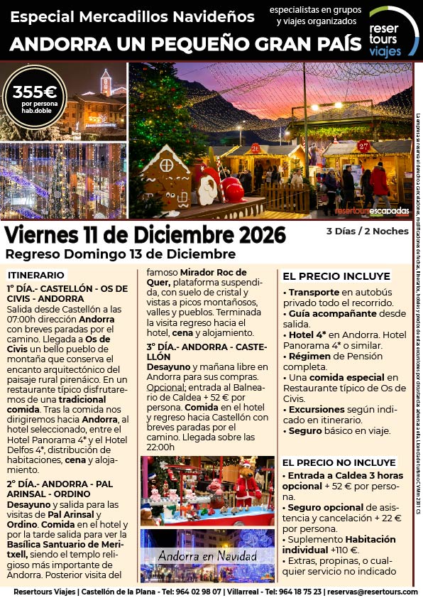 ANDORRA UN PEQUEÑO GRAN PAÍS "Especial Mercadillos Navideños" (Con Plazas)