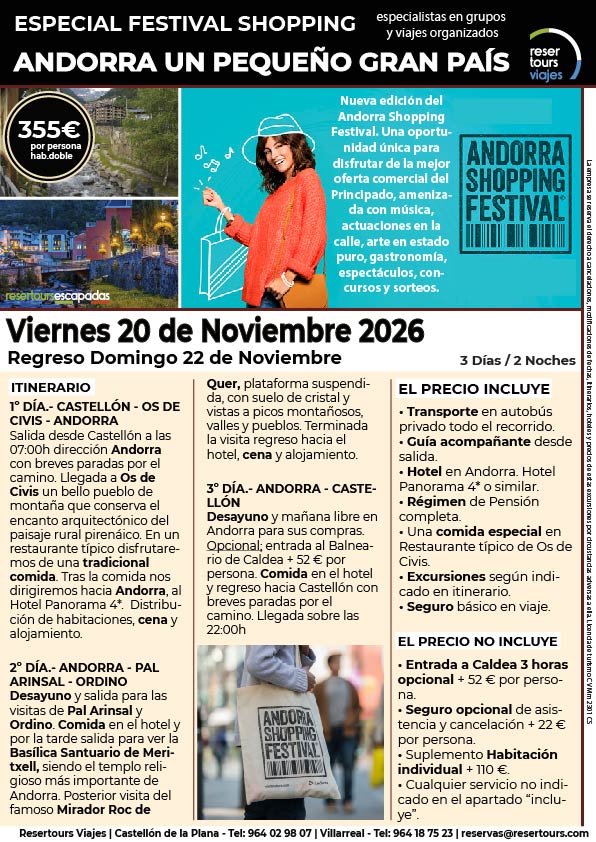 ANDORRA UN PEQUEÑO GRAN PAÍS "Especial Festival Shopping"(Con Plazas)