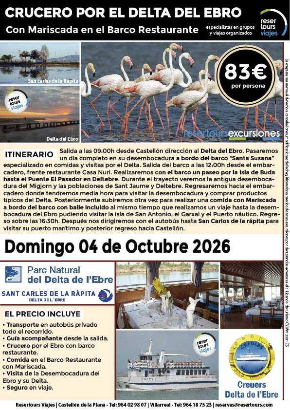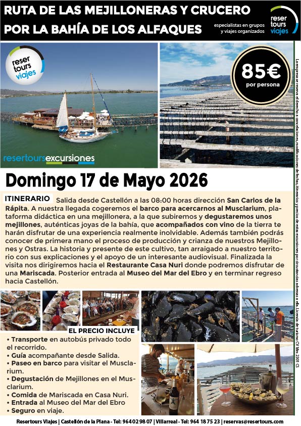 • Almuerzo popular incluido. • Visitas del Ballestar, La Pobla de Benifassá y La Senia.