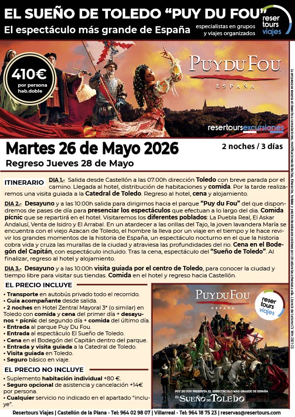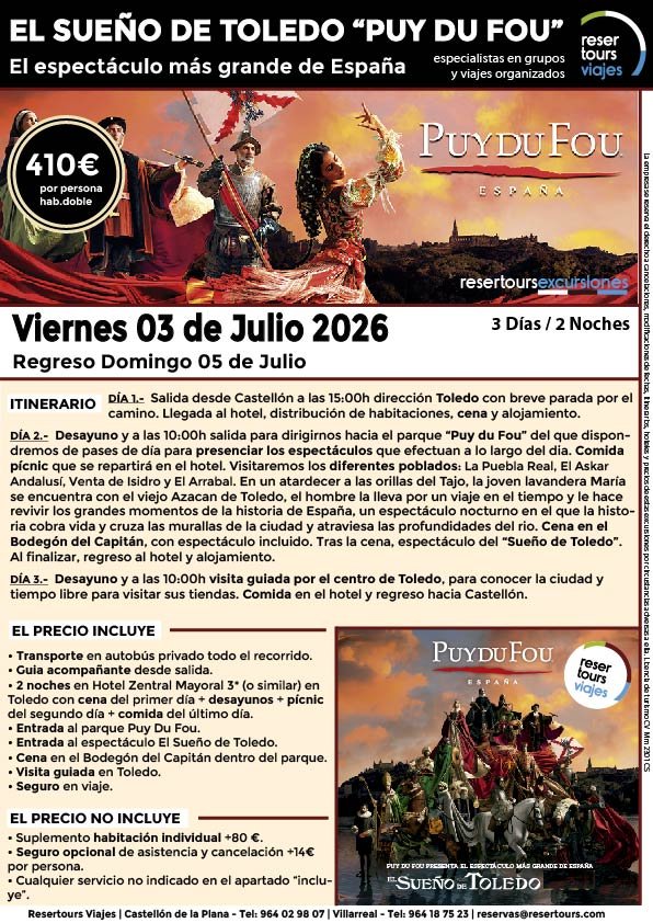 EL SUEÑO DE TOLEDO “PUY DU FOU” "El espectáculo más grande de España"(Con Plazas)