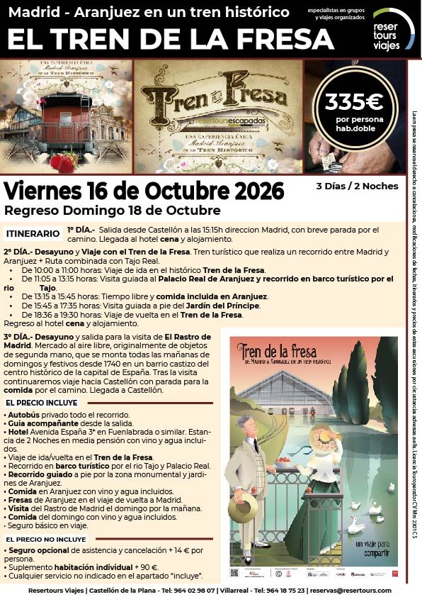 EL TREN DE LA FRESA ”Madrid - Aranjuez en un tren histórico"(Con Plazas)