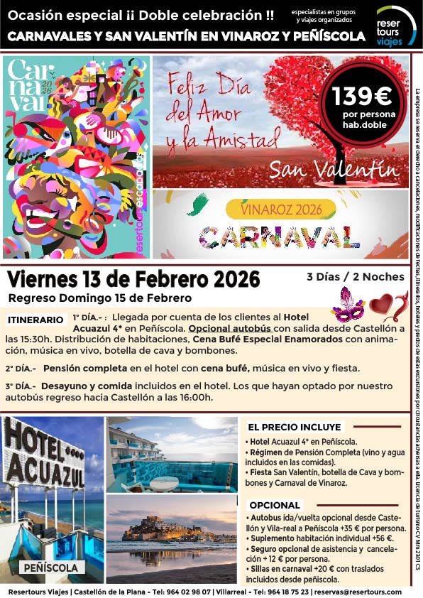 CARNAVALES Y SAN VALENTÍN EN VINAROZ - Ocasión especial ¡¡ Doble celebración !! (Completa)