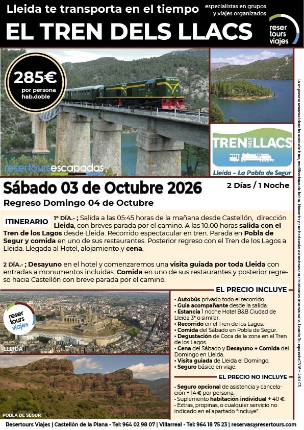 EL TREN DELS LLACS ”Lleida te transporta en el tiempo"(Con Plazas)