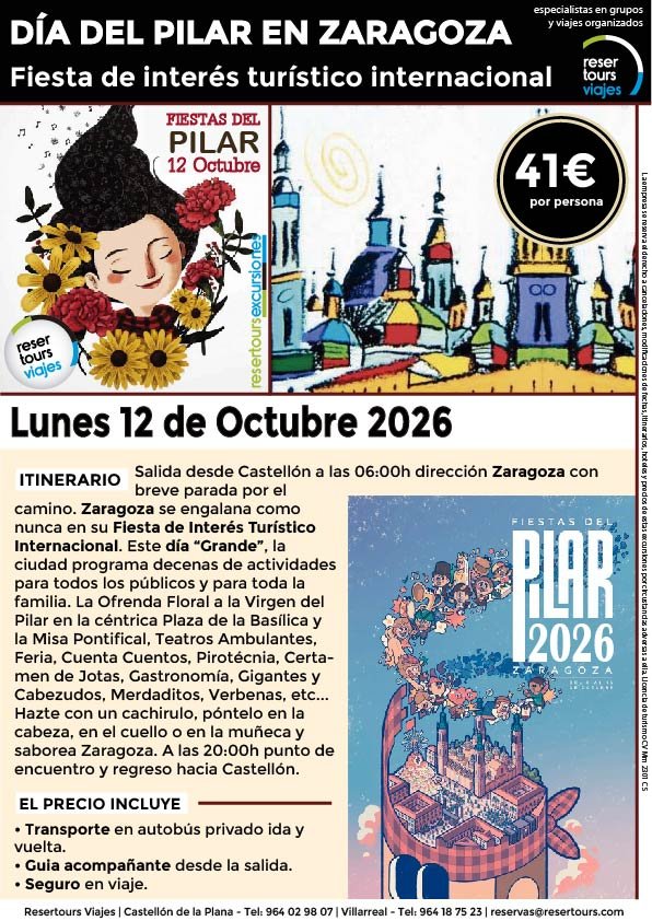 DÍA DEL PILAR EN ZARAGOZA “Fiesta de interés turístico internacional” (Con Plazas)