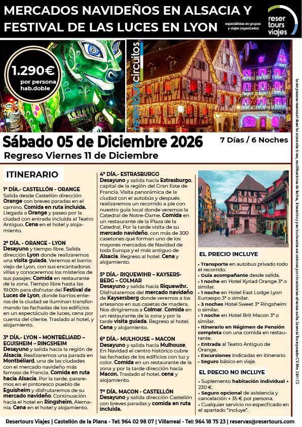 MERCADOS NAVIDEÑOS EN ALSACIA Y FESTIVAL DE LAS LUCES EN LYON (Con Plazas)