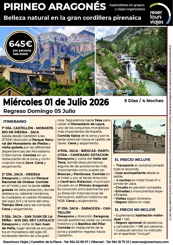 PIRINEO ARAGONÉS "Belleza natural en la gran cordillera pirenaica" (Con Plazas)