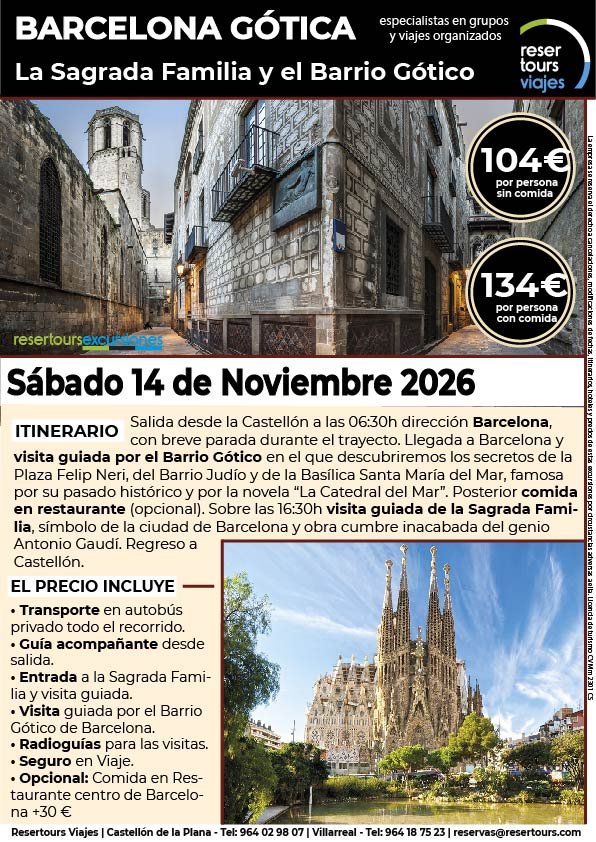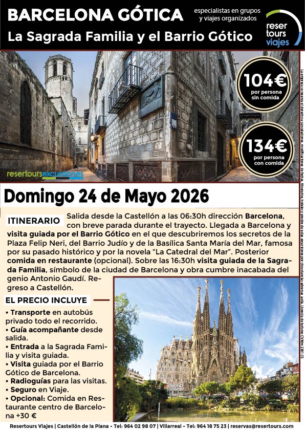 BARCELONA GÓTICA "La Sagrada Familia y el Barrio Gótico" (Con Plazas)