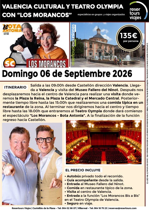 VALENCIA CULTURAL Y TEATRO OLYMPIA CON ‘’LOS MORANCOS’’ (Con Plazas)