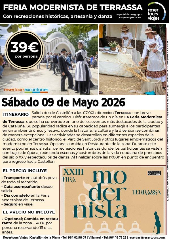 FERIA MODERNISTA DE TERRASSA "Con recreaciones históricas, artesanía y danza" (Con Plazas)