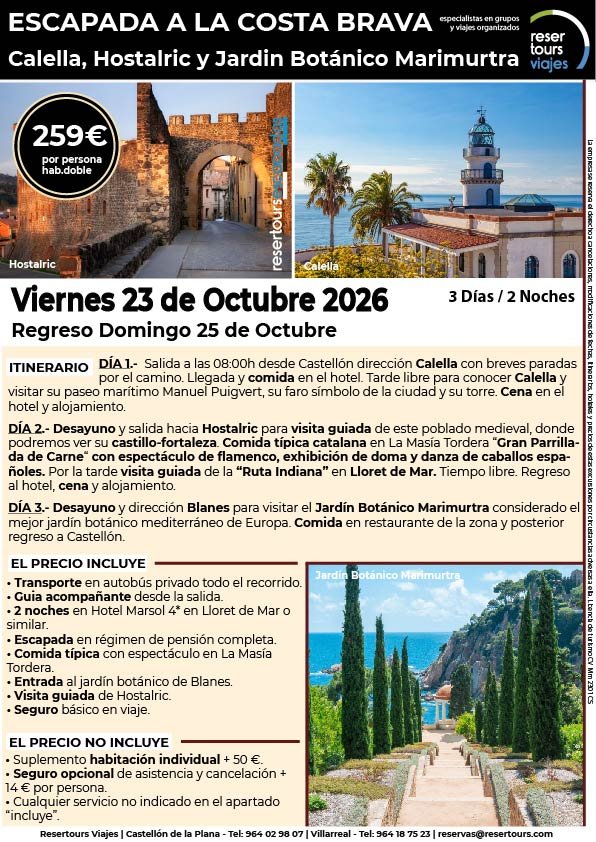 ESCAPADA A LA COSTA BRAVA "Calella, Hostalric y Jardin Botánico Marimurtra"(Con Plazas)