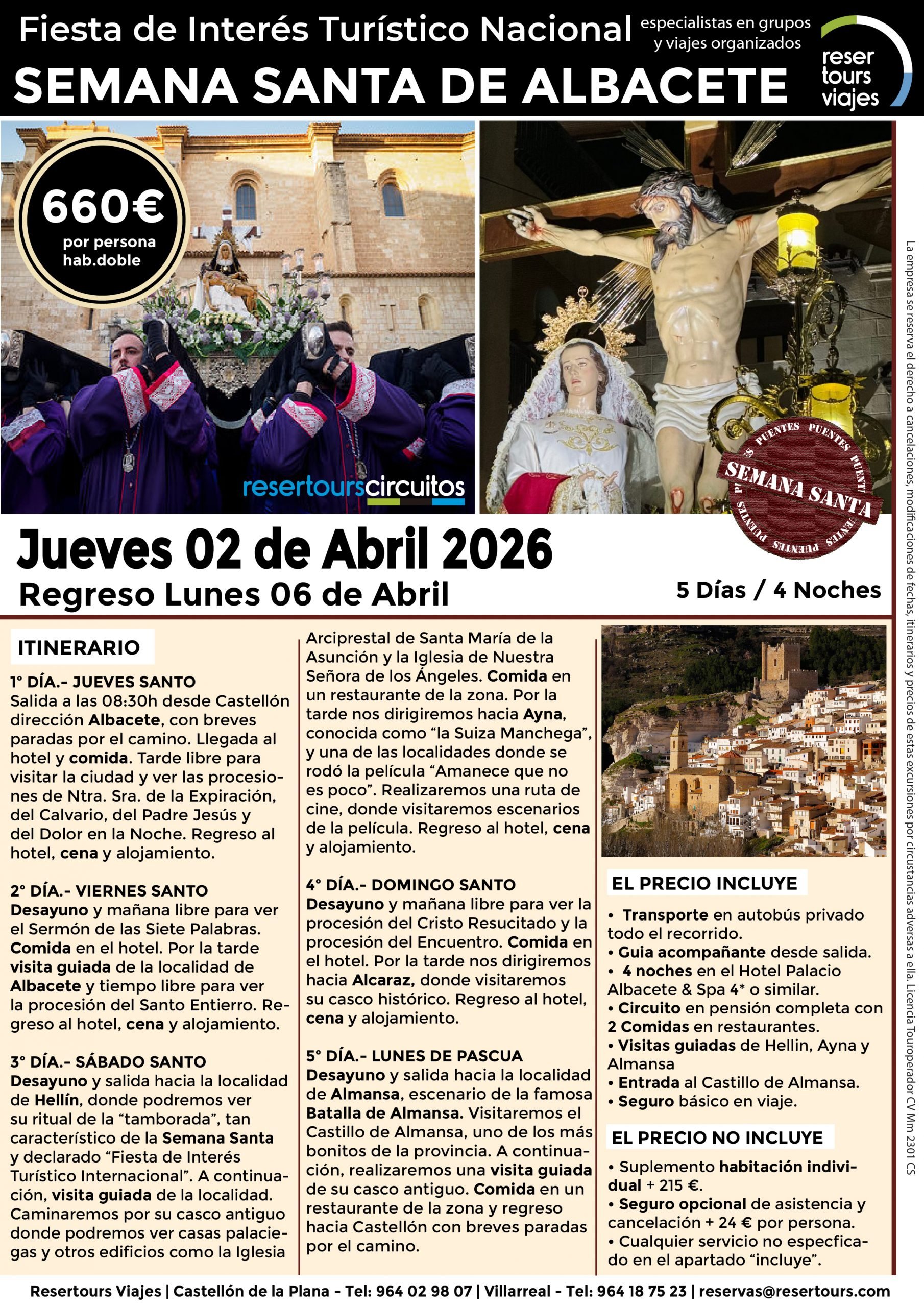 SEMANA SANTA DE ALBACETE "Fiesta de Interés Turístico Nacional" (Con Plazas)