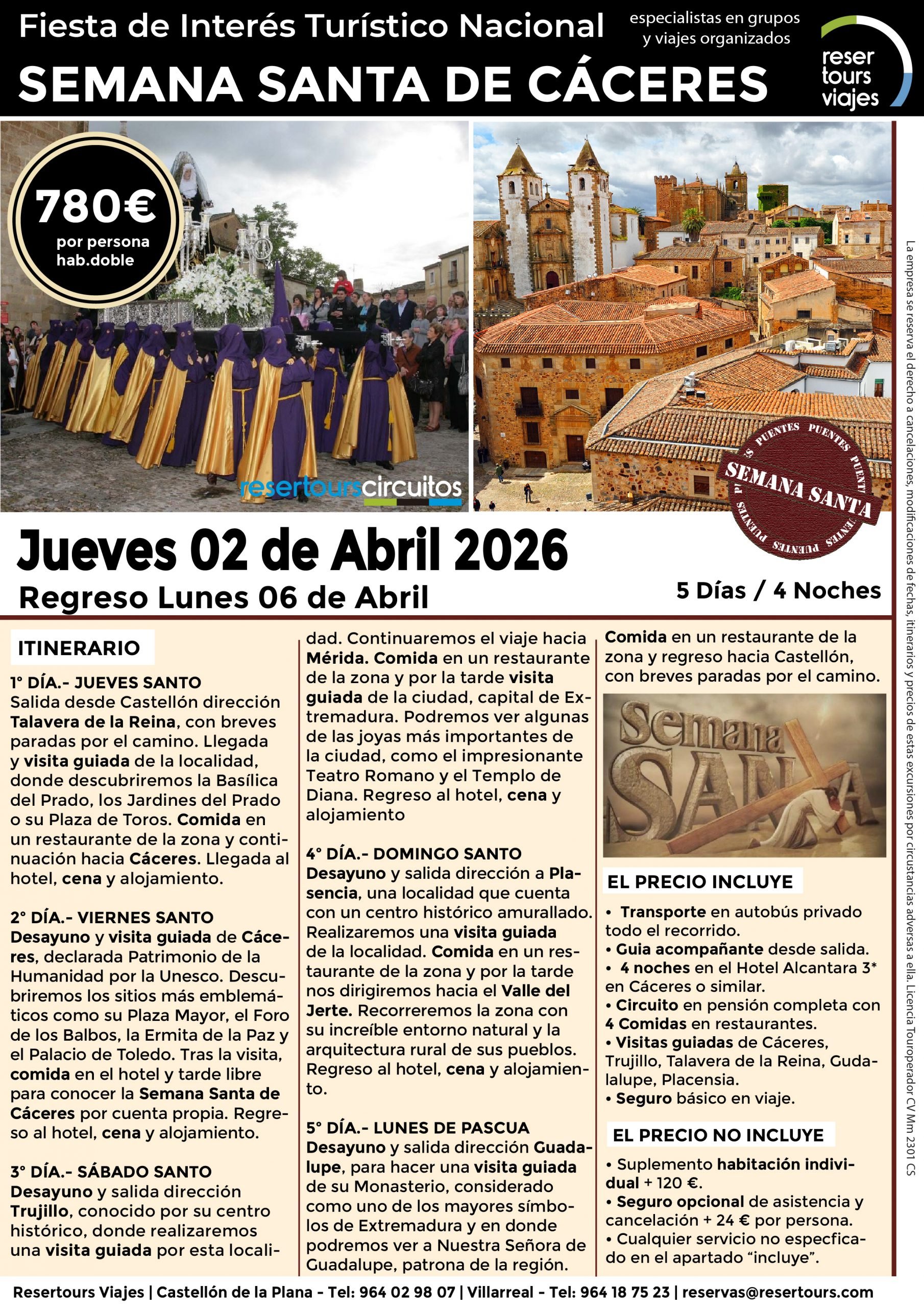SEMANA SANTA DE CACERES "Fiesta de Interés Turístico Nacional" (Con Plazas)