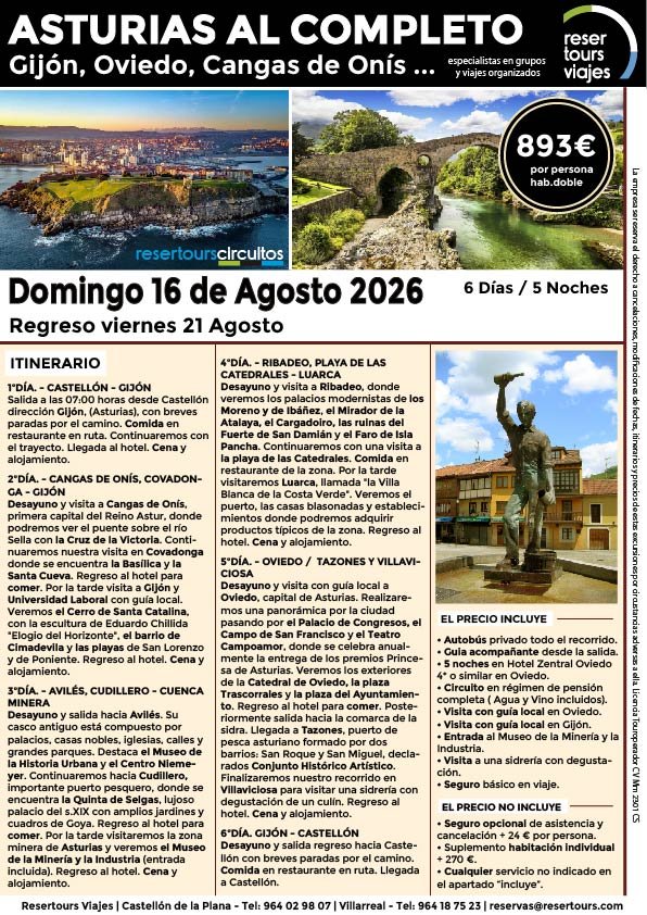 • Traslados Castellón – Aeropuerto Barcelona – Castellón. • Guia acompañante desde salida.