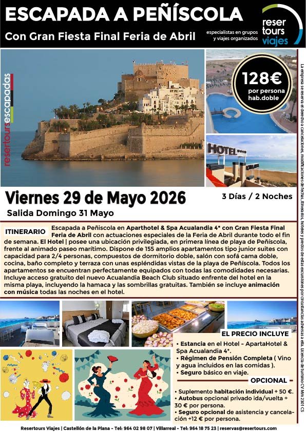 • Visita guiada por Sevilla con paseo en barco por el Guadalquivir. • Visita de la Feria de Abril con comida en una de sus Casetas y con fiesta Sevillana. • Paseo en carruaje de caballos por Sevilla. • Entrada espectáculo flamenco. • Seguro básico en viaje.