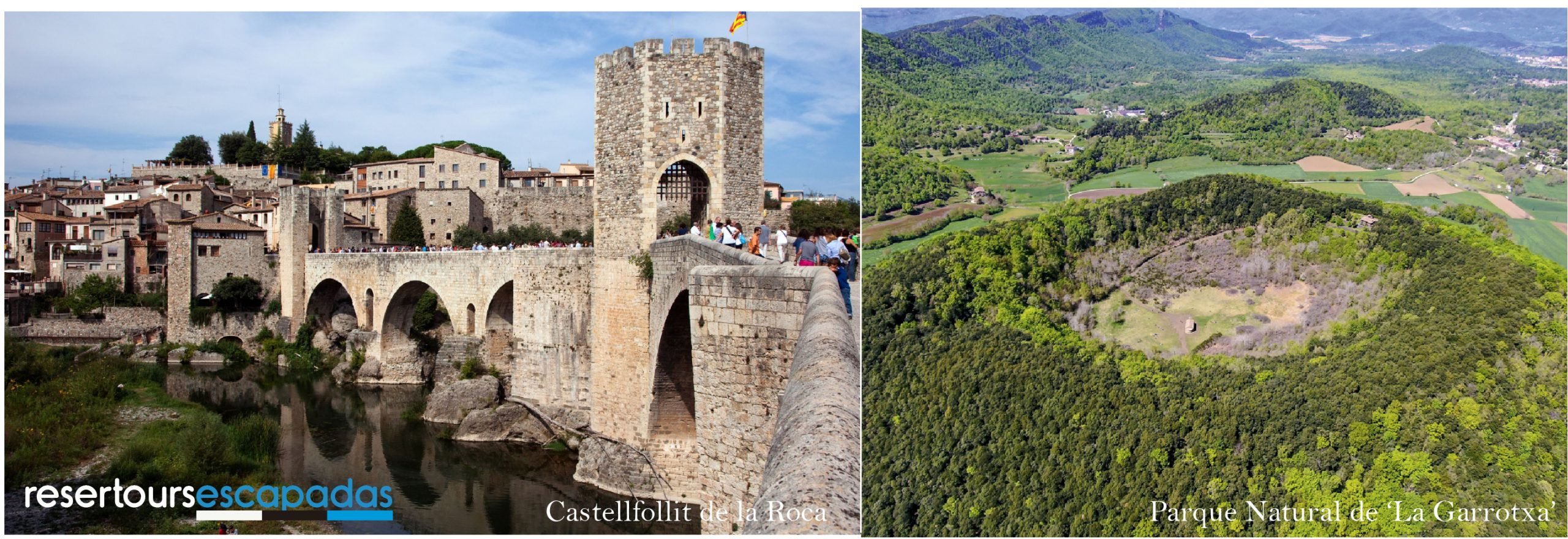 DIA 2.- Desayuno y salida dirección Castellfollit de la Roca donde realizaremos una vista panoramica de sus impresionantes acantilados basálticos, su casco antiguo medieval y subiremos al Mirador de Josep Pla. Terminada la visita nos dirigiremos hacia Olot, una joya cultural con su Parque Natural de la Zona Volcánica de la ‘La Garrotxa’. Comida en un restaurante a base de carne a la brasa y posterior paseo en carruaje de caballos y tren turístico por la reserva natural de la Fageda. Posterior nos dirigiremos hacia Sant Pau, villa de origen medieval ubicada en la zona volcanica. Regreso al hotel, cena y alojamiento.