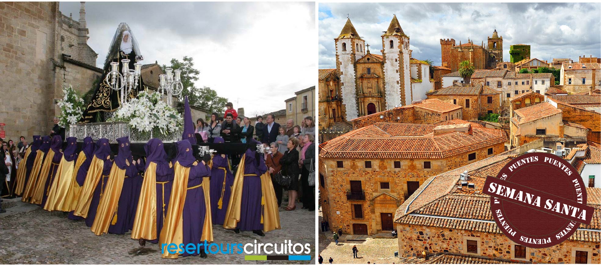 Desayuno y visita guiada de Cáceres, declarada Patrimonio de la Humanidad por la Unesco. Descubriremos los sitios más emblemáticos como su Plaza Mayor, el Foro de los Balbos, la Ermita de la Paz y el Palacio de Toledo. Tras la visita, comida en el hotel y tarde libre para conocer la Semana Santa de Cáceres por cuenta propia. Regreso al hotel, cena y alojamiento.